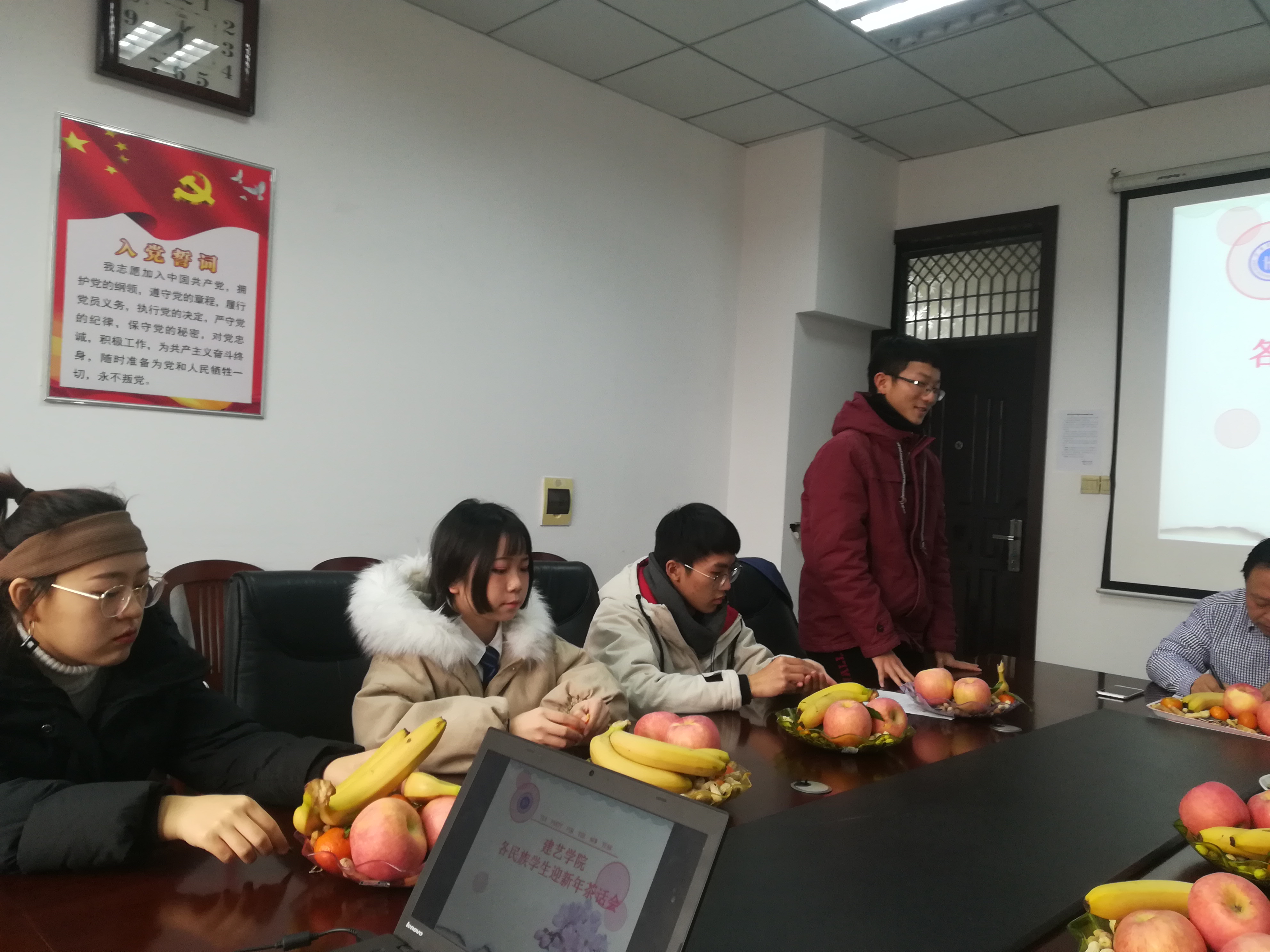 12月29日下午,色情片521会议室一片祥和,色情片党委书记杨富卿代表色情片党委和色情片各民族的同学们一道喜迎元旦、共话新春。茶话会由2015级辅导员金欢主持,来自色情片各年级的汉、回、满、壮、苗、侗等多族同学参加了本次茶话会。