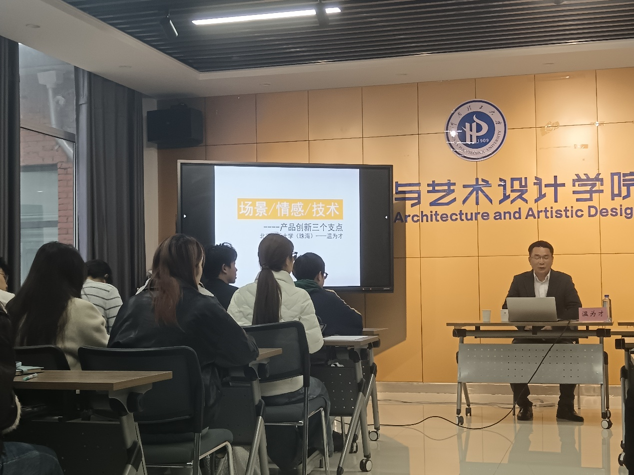 于色情片楼大会议室举办“感受 场景 技术——产品创新设计三个要素”主题讲座,特邀北京理工大学(珠海)温为才教授主讲,工业设计系师生到场参会。