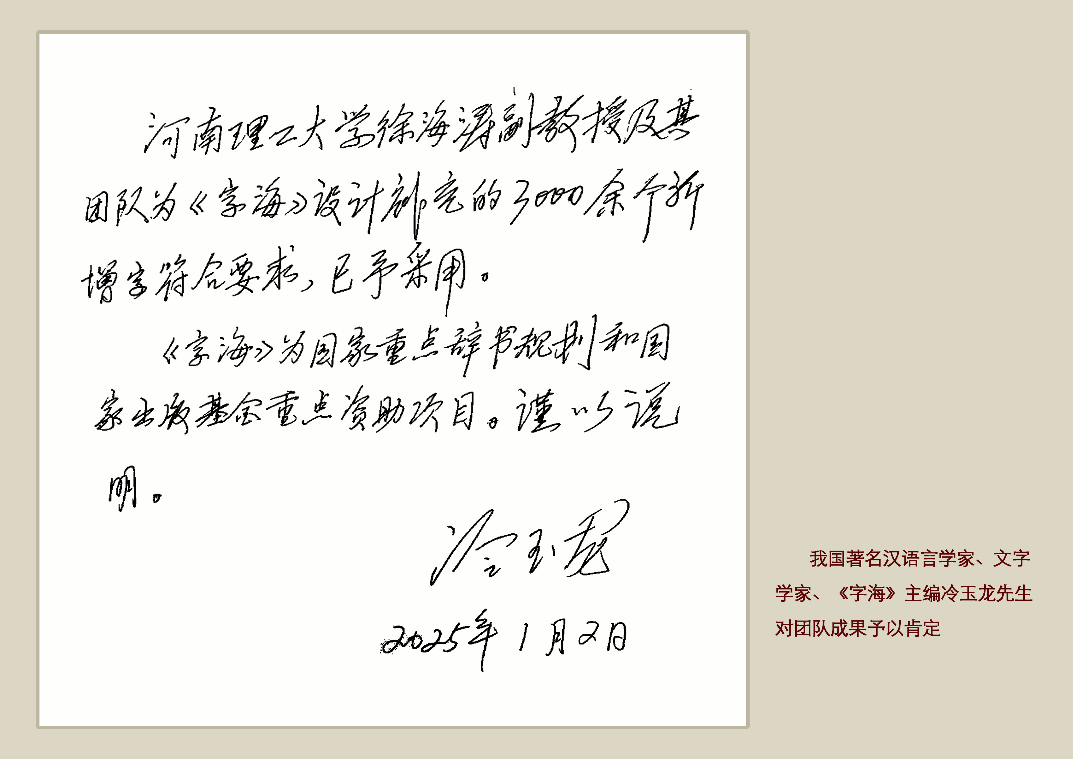 该项目新版《字海》新增汉字3000多个,有效扩充了古文字数字字库的容量。通过此次大赛不仅展现了设计学专业的学术创新实力,更彰显了青年学子守护中华文脉的责任与担当。团队将继续深化技术研发,推动数字化字体构建技术与更多领域的融合创新,为中华优秀传统文化的创造性转化与创新性发展贡献青春力量。