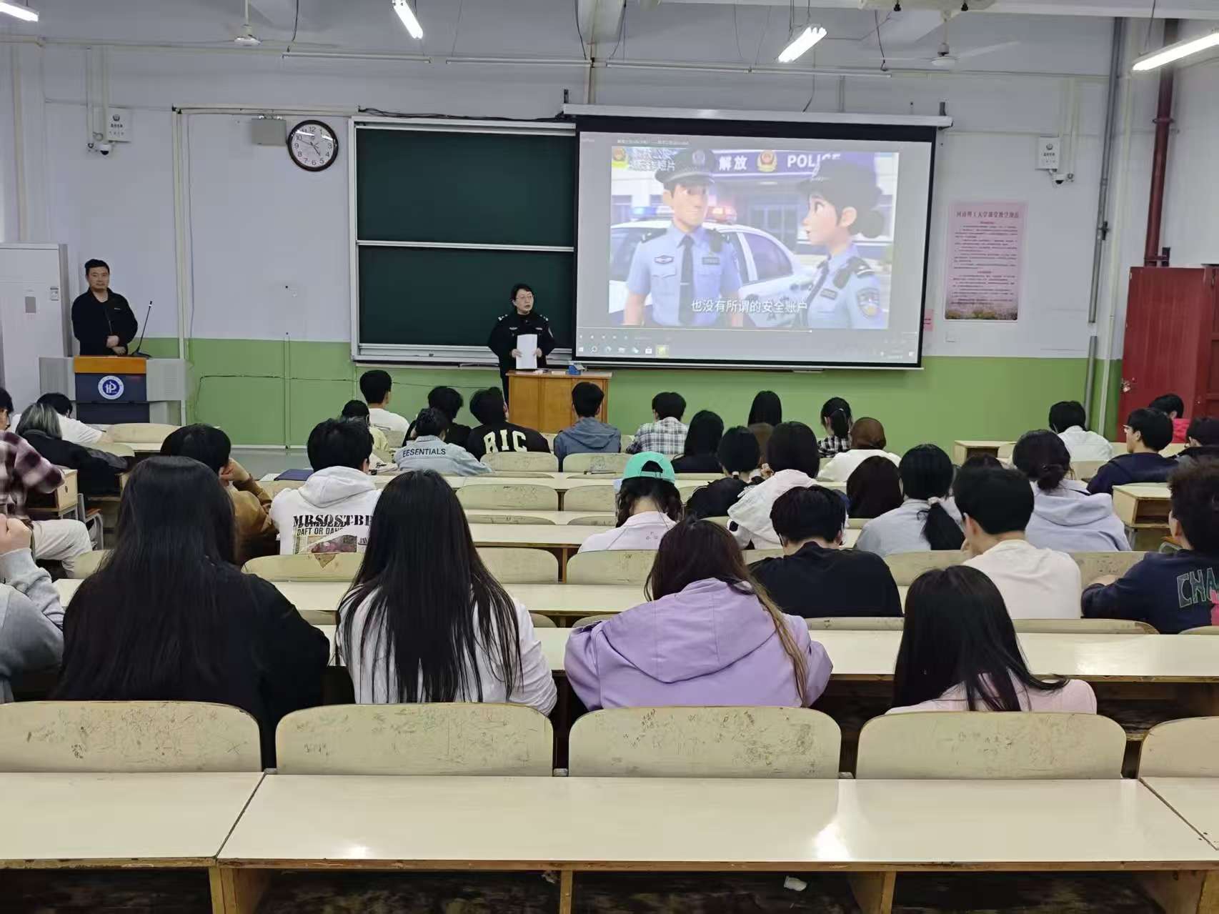 学生在2号教学楼2203教室成功举办反诈骗主题安全宣讲会。本次宣讲会由金欢老师主持,特邀张莉警官主讲,24级工业设计、风景园林、建筑学、城乡规划、视觉传达设计专业全体学生参会学习。